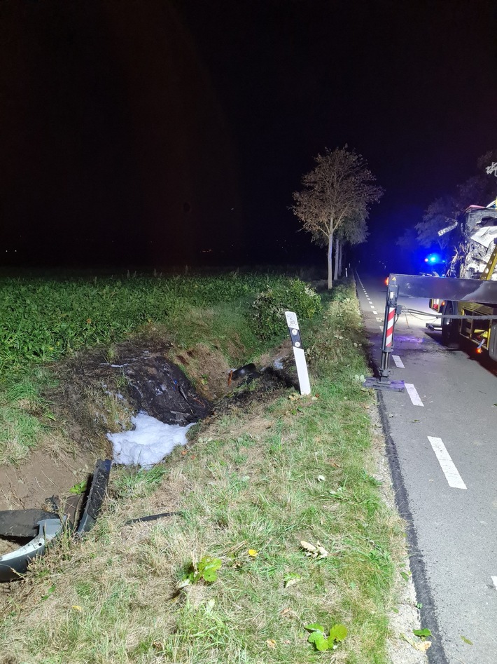 POL-HI: Verkehrsunfall mit drei leicht verletzten Personen und anschließendem Pkw-Brand - Fahrzeugführer steht unter Alkoholeinfluss